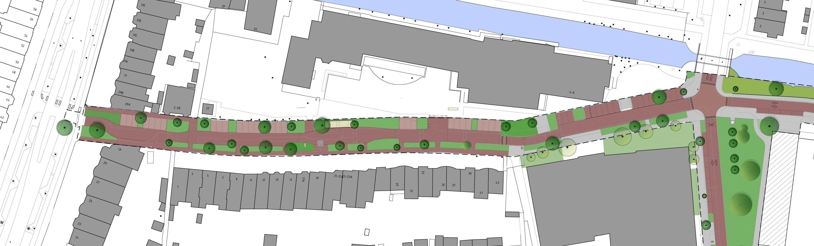 Variant 2: grootste deel woonerf (grotere afbeelding in bijlage onderaan deze pagina)